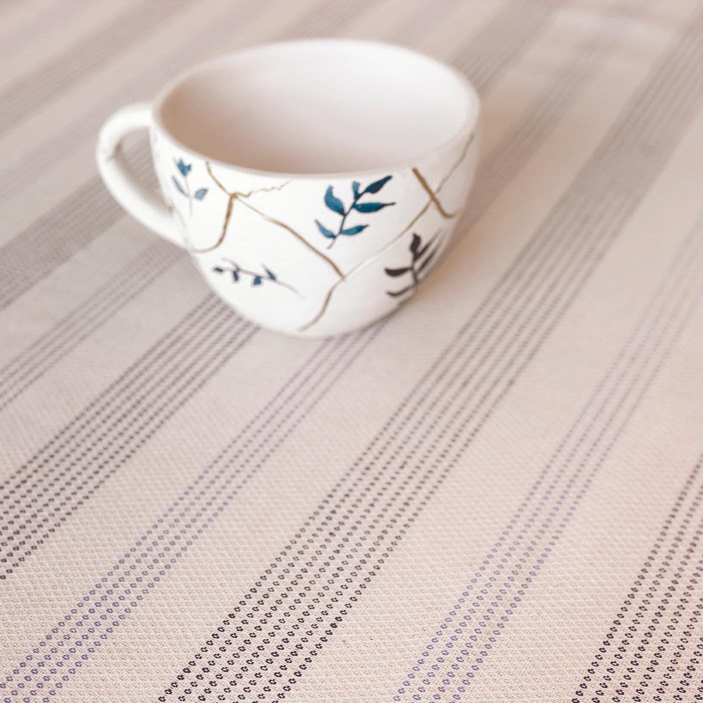 Țesătura Canvas dungată, tip jacard, este un amestec practic și natural de bumbac reciclat certificat, in și viscoză, in nuanțe de bej pe fundal crem. O alternativă sustenabilă cu conținut predominant de fibre reciclate, această țesătură cu aspect rustic este potrivită pentru o varietate mare de proiecte, de la draperii, la perne și accesorii decorative. Mărimea recomandată a acului de mașină pentru această țesătură este de 80/90; de asemenea, se recomandă spălarea sau calcatul cu o stație de abur inainte de croit și cusut.