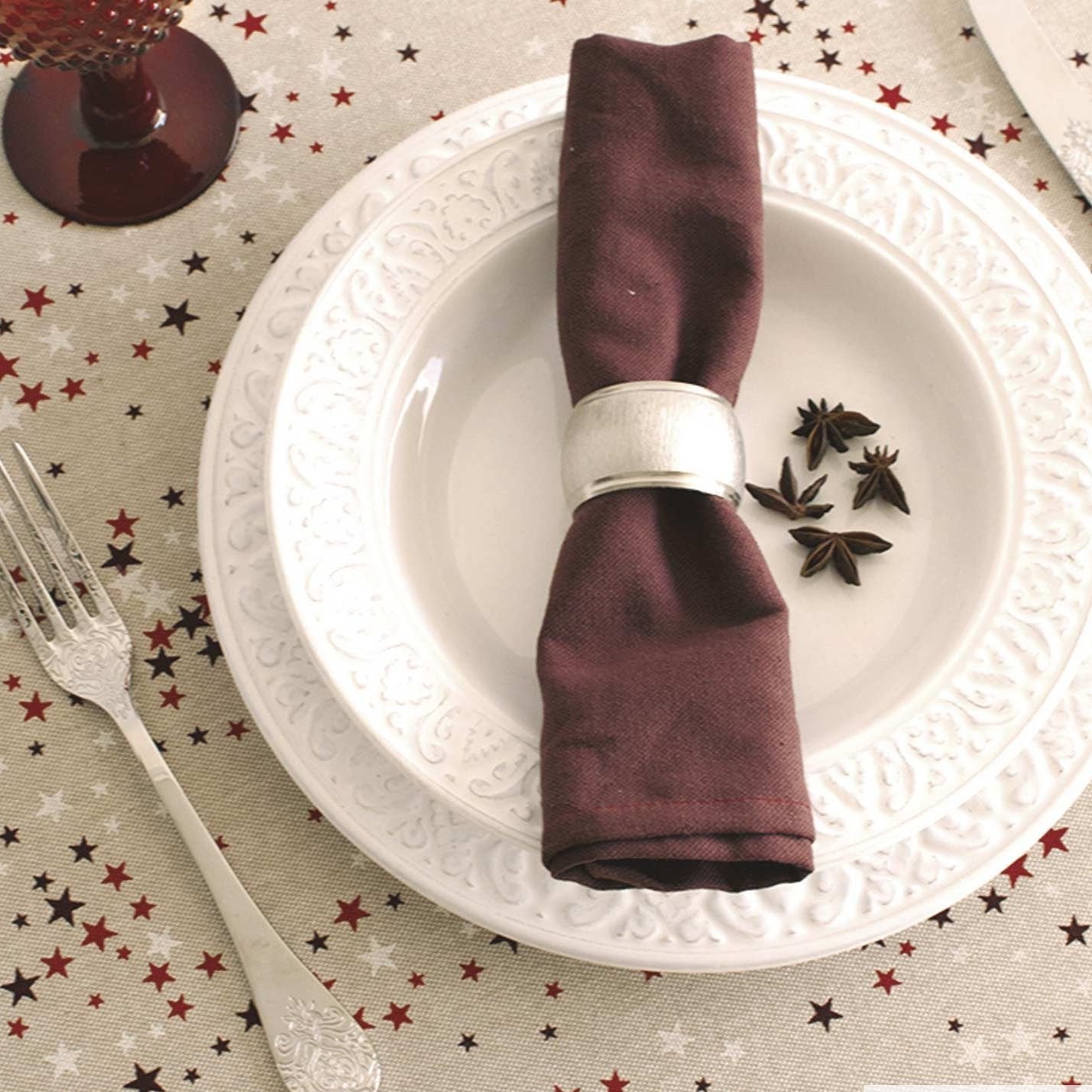Un imprimeu abstract specific sărbătorilor de iarnă, cu steluțe stilizate, in nuanțe de roșu, vișiniu și crem, pe fundal bej natur. Țesătura de bumbac Canvas are densitatea de 194 g/m.p., fiind astfel potrivită pentru decorațiuni, tapițat și accesorii de interior.