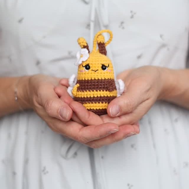 Dimensiunea finală a jucăriei croșetate este de 18 cm.