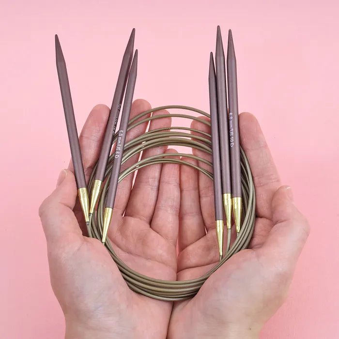 Noile andrele Mystic Lace de la marca germană Addi au devenit rapid foarte populare printre pasionații de tricotat - această gamă este fabricată din aluminiu ușor, care se simte foarte bine în mâini, iar finisajul mat cu nuanță mov este plăcut și se pretează mai ales pentru fire cu textură foarte lunecoasă. Vârfurile andrelelor Mystic Lace sunt ușor alungite și bine finisate; acestea intră ușor printre ochiuri, astfel încât veți putea lucra modele ajurate și dantelate fără a vă obosi mâinile. Trecerea de pe capete pe cablu este foarte netedă, iar cablul de nailon este flexibil și rezistent.