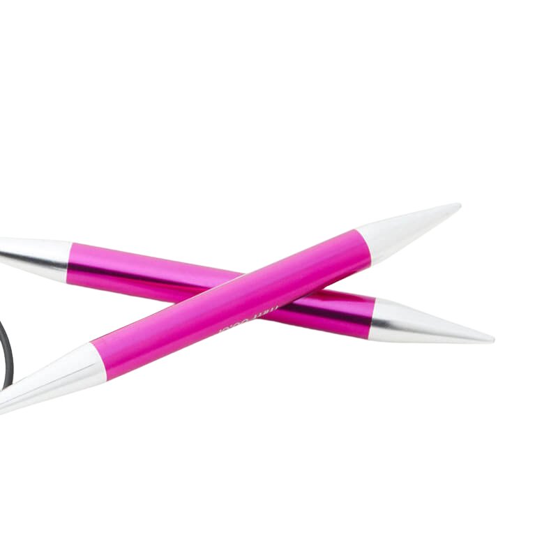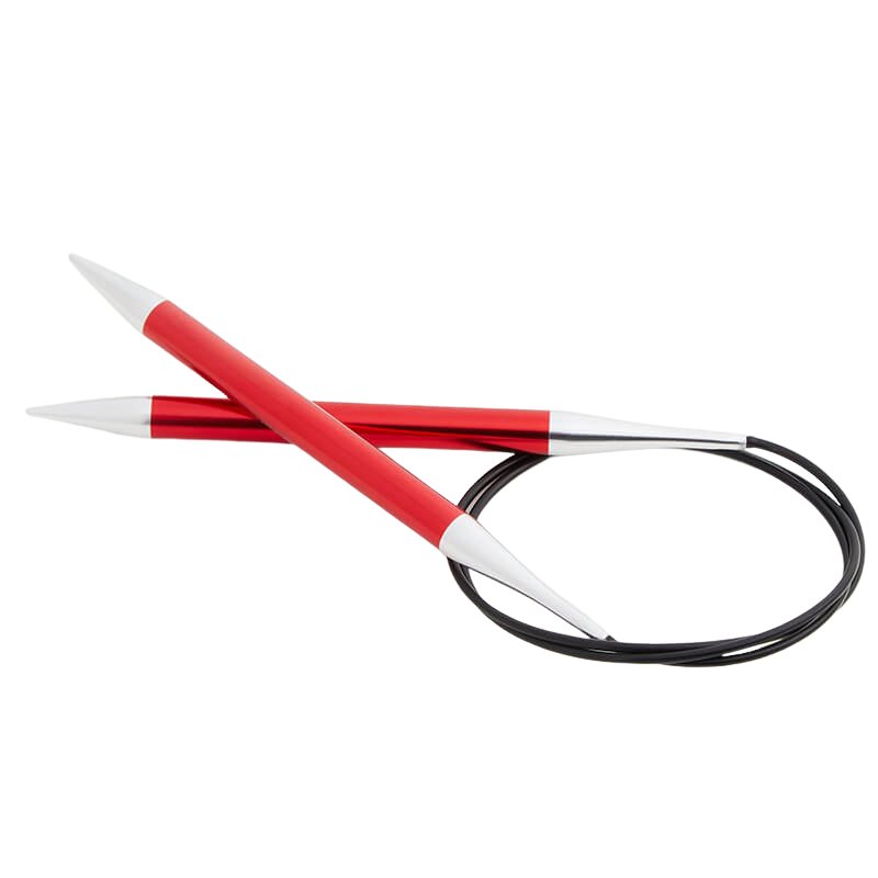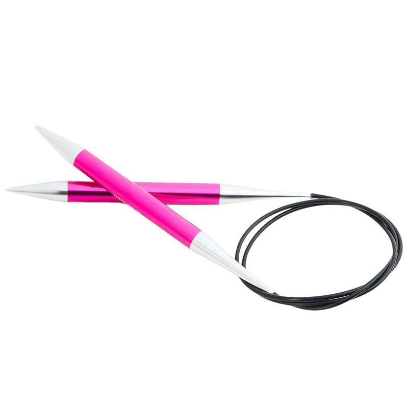 Pentru cei care preferă tricotatul pe andrele circulare fixe, andrelele de metal din colecția KnitPro Zing vor oferi o experiență confortabilă și facilă. Fabricate din aluminiu anodizat cu un finisaj extrem de neted și greutate redusă, andrelele sunt colorate diferit pentru fiecare mărime. Trecerea dintre capetele de metal și cablul de nailon este lină, astfel incât ochiurile nu se vor agăța in timpul tricotatului. Gama de andrele circulare fixe de 100 cm conține diametre de la 2 mm și până la 12 mm.