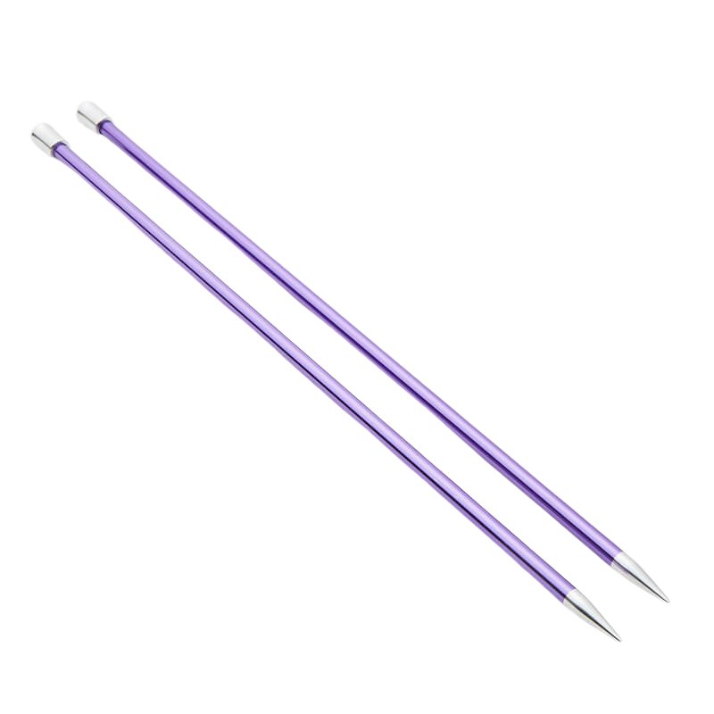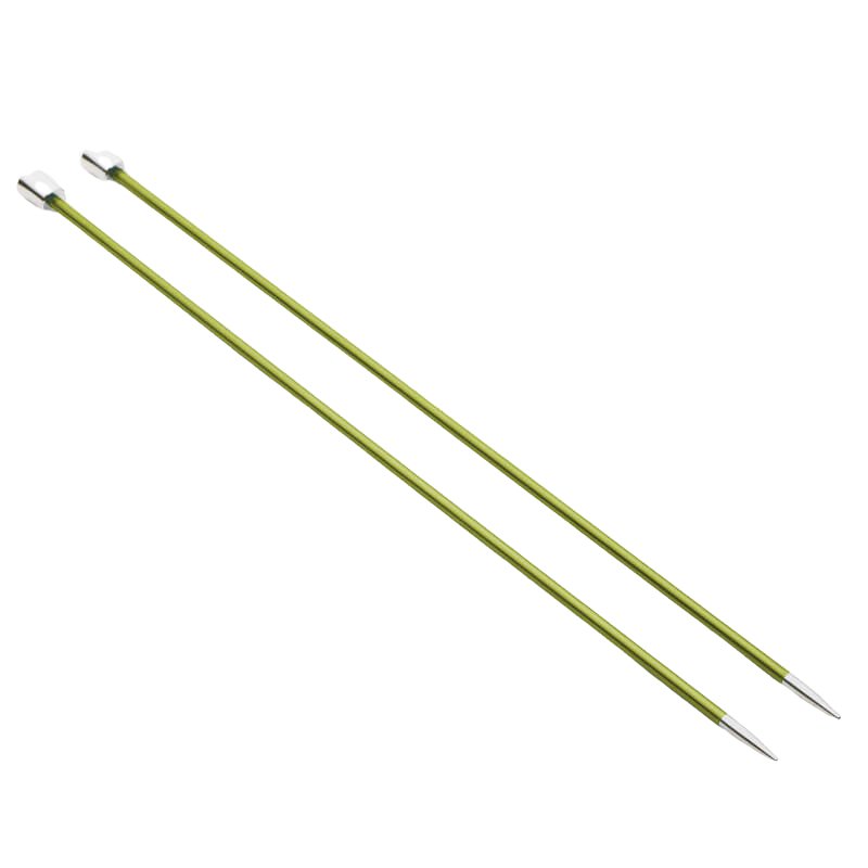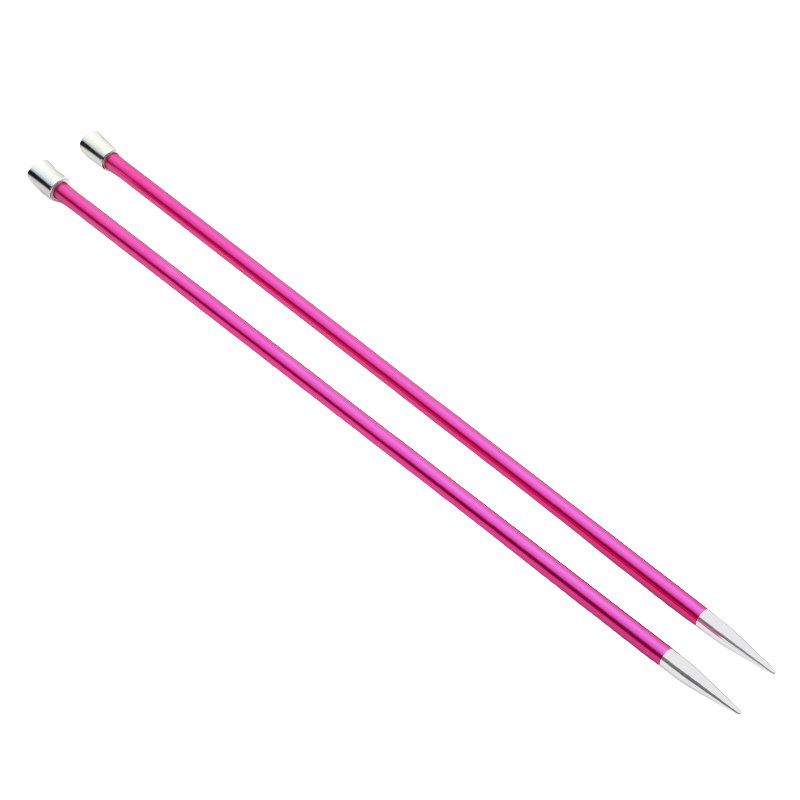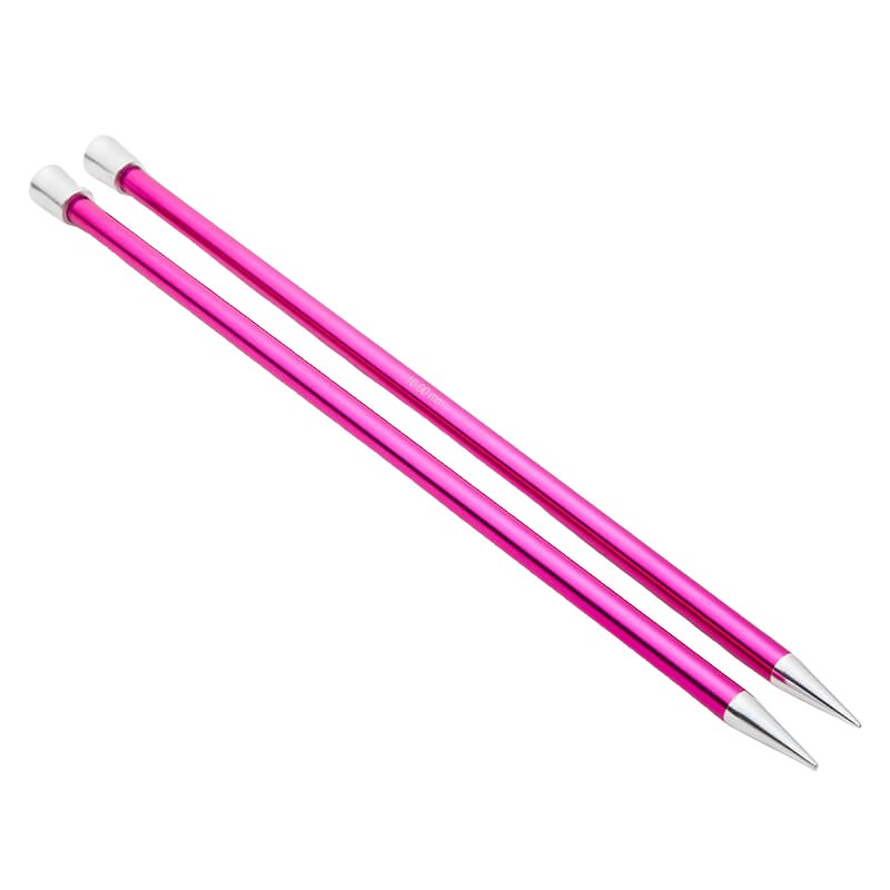 Pentru cei care preferă tricotatul pe andrele drepte, andrelele de metal din colecția KnitPro Zing vor oferi o experiență confortabilă și facilă. Fabricate din aluminiu anodizat cu un finisaj extrem de neted și greutate redusă, andrelele sunt colorate diferit pentru fiecare mărime. Gama conține diametre de la 2 mm și până la 12 mm.