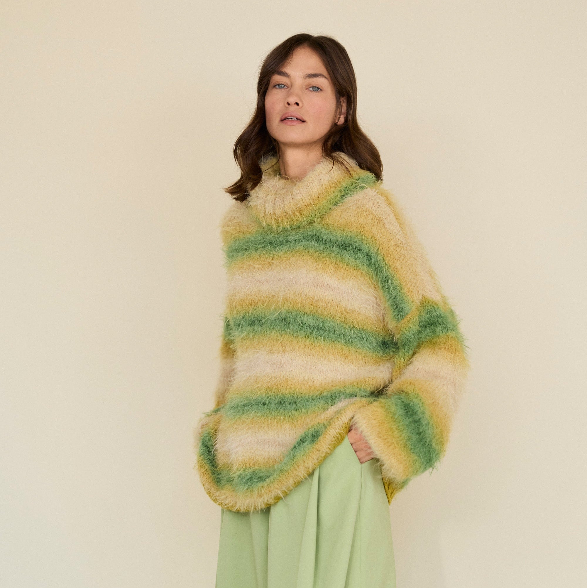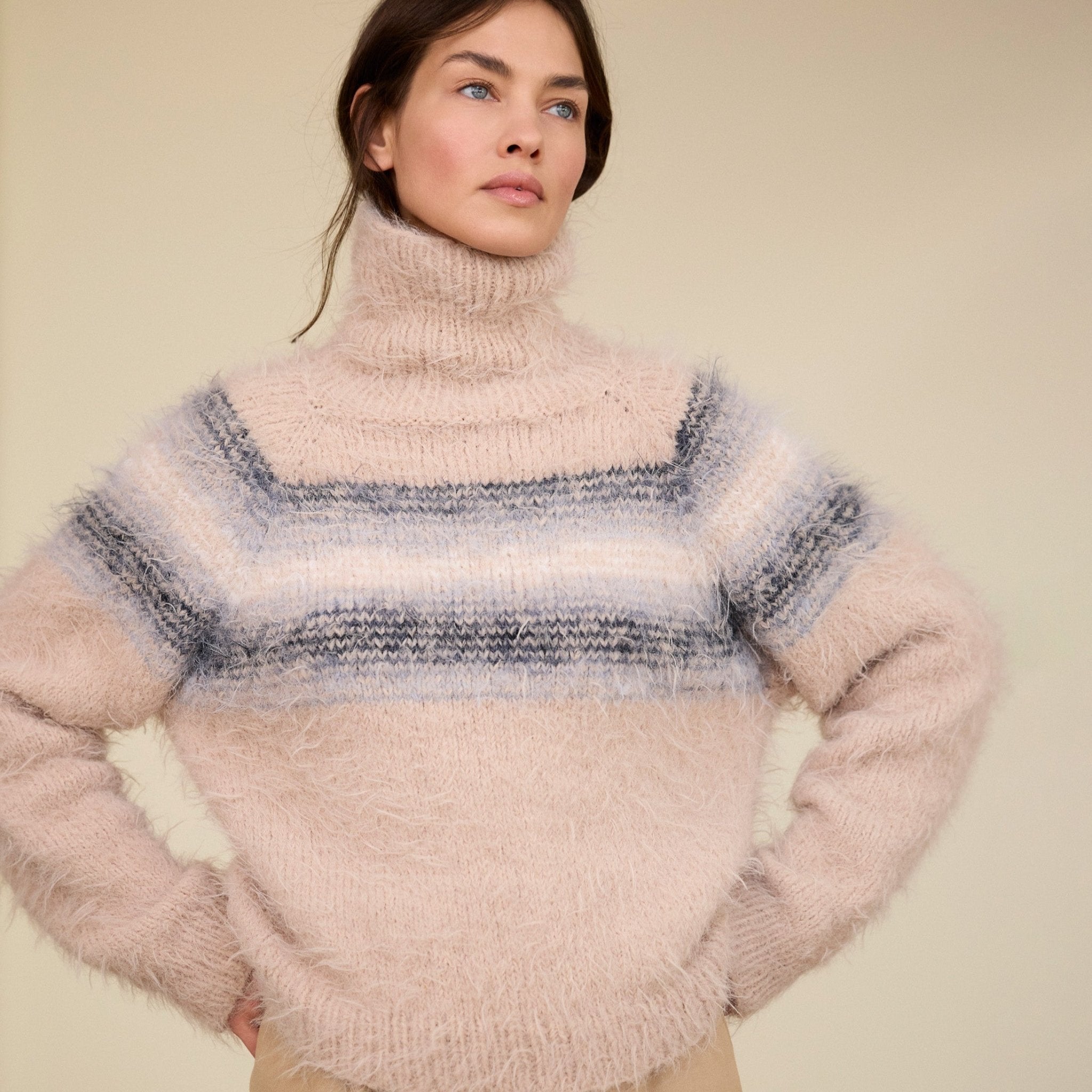 Devenită deja îndrăgită de la lansare, colecția de fire pufoase Basta de la Lana Grossa și-a extins familia cu o colecție complementară - Basta Mista, o variantă variegată a aceluiași fir, cu nuanțe care se potrivesc perfect cu variantele uni din prima gamă. Ca și colecția clasică, Basta Mista este un fir obținut din merinos extrafin îmbinat cu poliamidă pentru rezistență crescută; designer-ii de la Lana Grossa au conceput o structură deosebită, împletind fibrele de poliamidă cu cele de merinos și obținând un aspect franjurat, ușor și pufos. Prezentat în gheme de 50 de grame, firul are o lungime de 100 m și se lucrează rapid pe andrele de 6 mm. Perfect pentru piese deosebite, datorită aspectului pufos de blană, veți avea nevoie de doar 9 gheme pentru un pulover de mărimea M sau îl puteți combina cu alte fire pentru un efect garantat.