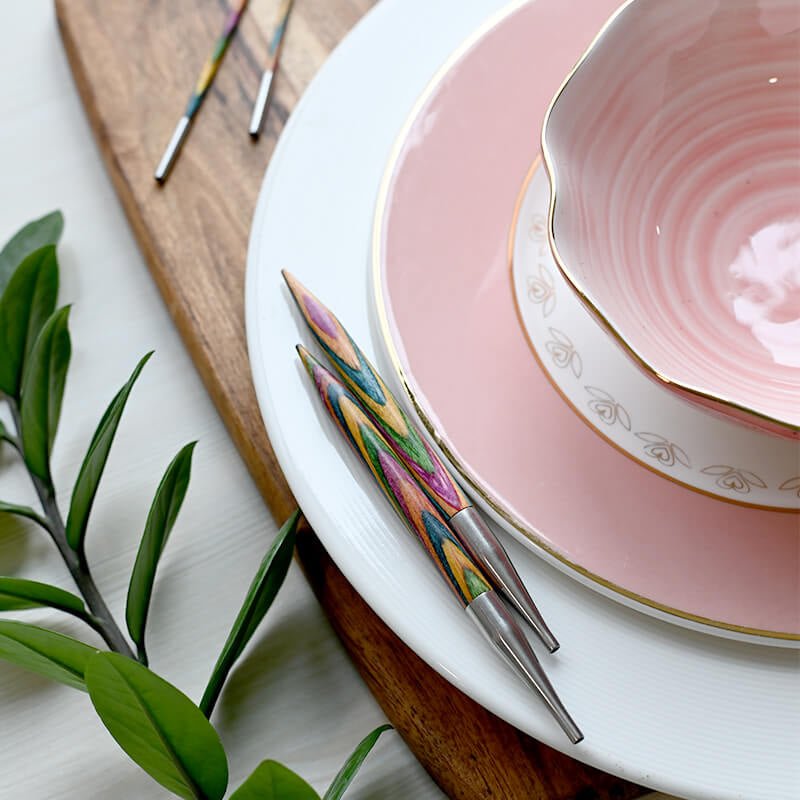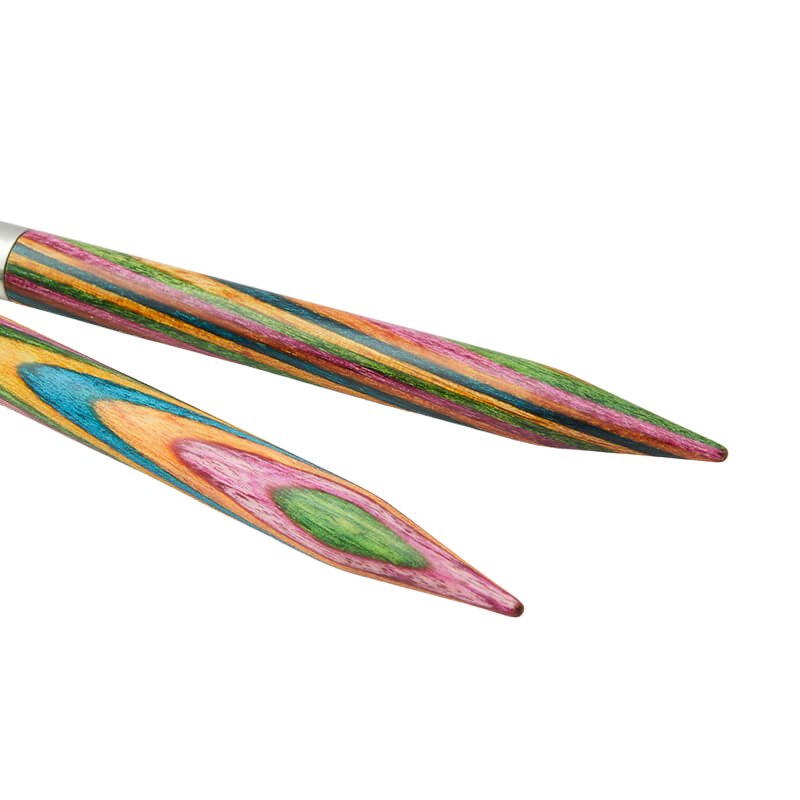 Colecția Symfonie de la KnitPro este de mulți ani recunoscută și apreciată de pasionații de tricotat datorită design-ului patentat cu aspect multicolor. Andrelele interschimbabile sunt fabricate din lemn laminat, cu finisaj foarte neted, acestea sunt foarte plăcute de ținut in mână, sunt ușoare și vă vor garanta o experiență confortabilă de tricotat. Capetele Symfonie sunt potrivite atât incepătorilor cât și celor avansați, acestea se pretează tuturor tipurilor de fibre. Gama de andrele interschimbabile KnitPro Symfonie este disponibilă in 2 variante de lungime: cea standard, de 13 cm, și varianta scurtă - de 10 cm. Capetele standard, de 13 cm, sunt potrivite pentru a lucra circular bluze și pulovere, sau pentru a tricota articole de dimensiuni mai mari. Acestea se pot conecta la cabluri cu lungimea mai mare de 50 cm. Andrelele interschimbabile KnitPro Symfonie sunt disponibile in mărimi diferite, de la 3 mm și până la 15 mm. Acestea sunt compatibile cu toate tipurile de cabluri de la KnitPro, indiferent de colecție.