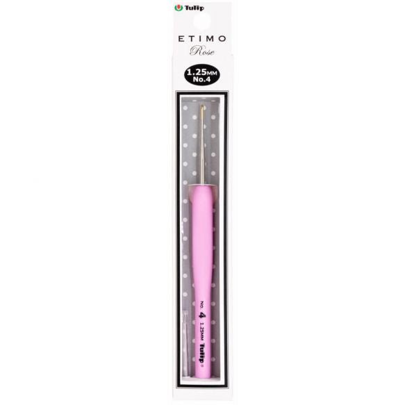 Recunoscută și apreciată de mulți ani de pasionații de croșetat, marca japoneză Tulip oferă probabil cele mai confortabile croșete, create pentru a oferi o experiență supremă a croșetatului. Incepând de la vârful bine ascuțit și foarte neted al croșetelor, care intră ușor printre ochiuri, continuând cu greutatea redusă - mai ușoară decât un creion, și terminând cu mânerul moale ergonomic, cu adâncitură specială pentru degetul mare, mâner care se așează perfect in palmă. Gama de croșete fine, Tulip Etimo Rose, sunt create pentru lucru cu fire superfine și subțiri, fiind disponibile in mărimi de la 0,6 mm. Fiecare dimensiune este diferențiată printr-o nuanță diferită de roz a mânerului. Prețul este afișat per unitate. Pentru fire mai groase, recomandăm gama de croșete Tulip Etimo Red.