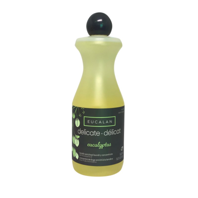 Detergentul îmbogățit cu lanolină de la Eucalan Canada a fost introdus prima dată pe piață in 1989 și de atunci a devenit unul din cele mai populare produse de îngrijire pentru articole de lână, printre pasionații de tricotat și croșetat. Disponibil in câteva variante de arome: iasomie, eucalipt, grepfrut sau lavandă, detergentul Eucalan este imbogățit cu uleiuri esențiale naturale. Acesta poate fi folosit atât pentru articole de lână cât și pentru multe alte articole delicate sau care necesită tratament anti-static (lenjerie de corp, dresuri, geci cu umplutură de pene, costume de baie sau articole pentru bebeluși). Lanolina din compoziția detergentului Eucalan va îngriji fibrele, făcându-le și mai moi, și va preveni formarea câmpului static pe articole. Parfumul îmbietor se va păstra mult timp pe articolele spălate cu Eucalan.
