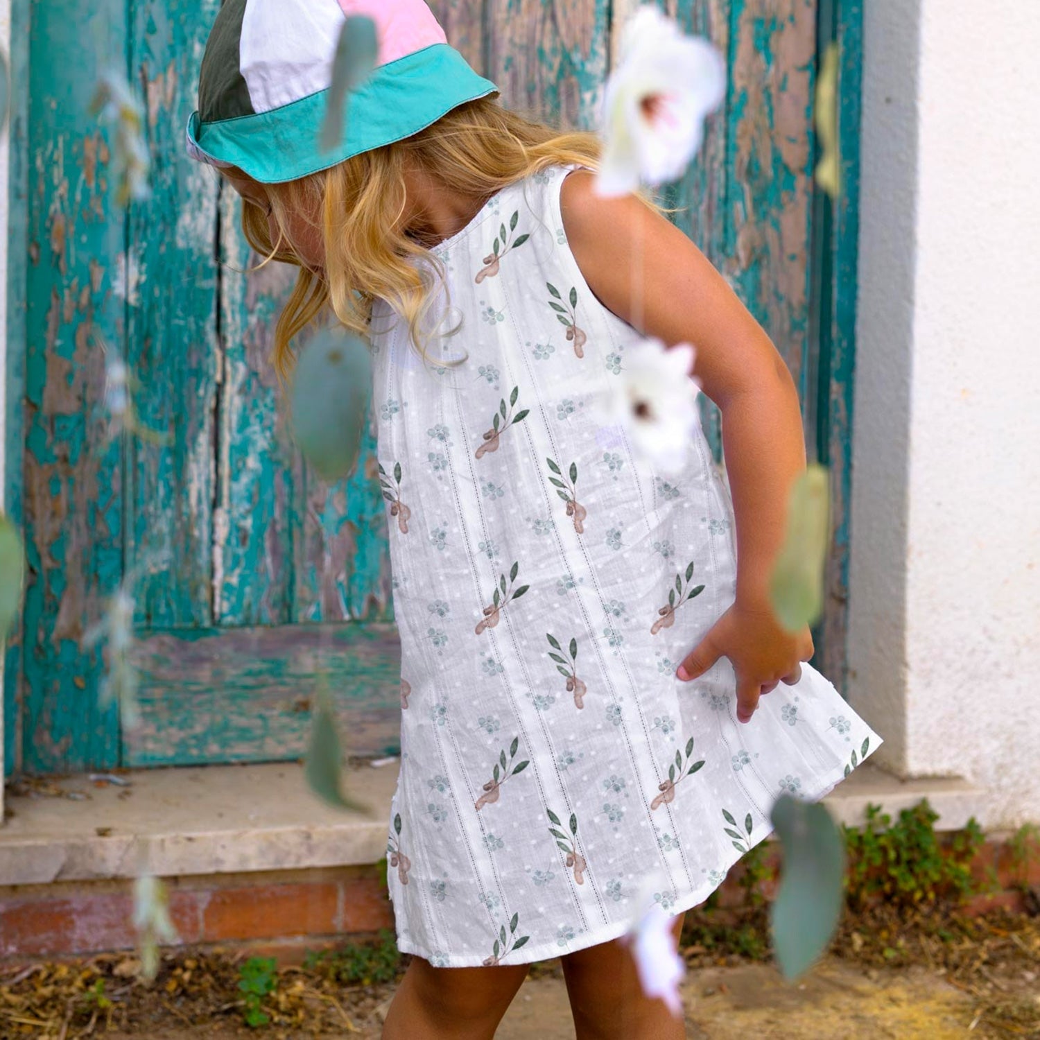 Țesătură ușoară de bumbac cu aspect rustic, cu inserții de broderie pe verticală și imprimeu abstract de frunzulițe, pomușoare și mici ornitorinci. Țesătura Plumeti este potrivită pentru bluze ușoare, rochii, fuste și cămăși.
