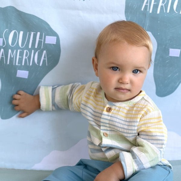 Model dungat, in nuanțe de vere deschis, galben lamaie și albastru denim pe natur, pe o țesătură subțire de bumbac cu adaos de viscoză, cu finisaj ușor texturat și aspect rustic. Țesătura Panama este ușor de intreținut și plăcută pe piele, astfel fiind potrivită pentru rochii și bluze de primăvară/vară, cât și haine pentru copii.