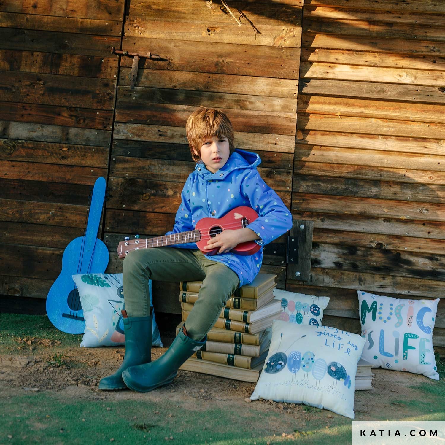 Un model abstract cu buline colorate pe fundal albastru denim. Țesătura rezistentă de poliester este dublată cu material polar, astfel fiind perfectă pentru jachete, hanorace și salopete călduroase și rezistente la umiditate.