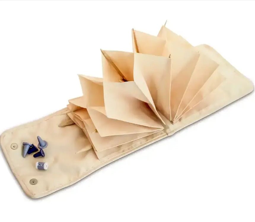 In sfârșit andrelele circulare nu se vor mai incâlci în punga cu gheme și alte materiale de tricotat - husa de depozitare și organizare de la Prym, cu 8 buzunare interioare, a fost special concepută pentru a vă ține in ordine andrelele cu fir. Husa are format de evantai, astfel veți găsi repede andrelele necesare. Pe exterior, husa mai are un compartiment cu fermoar pentru păstrarea diverselor accesorii auxiliare. Husa nu conține accesorii, pozele fiind cu caracter informativ.