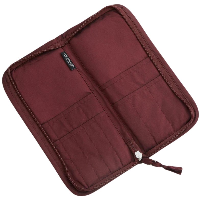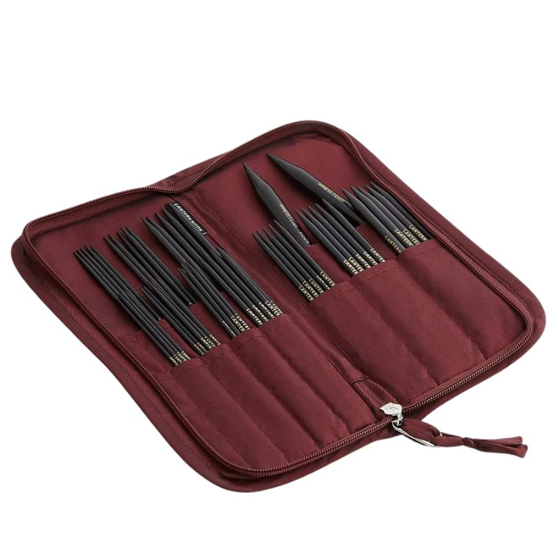 O husă fabricată din țesătură satinată cu imprimeu obținut prin tehnica tradițională Ajrak - produsă special pentru colecția de huse de la Lantern Moon - cu desene geometrice care sunt imprimate unul câte unul, cu blocuri de lemn, direct pe țesătură. Husa căptușită are 12 compartimente interioare pentru a acomoda diverse mărimi de andrele duble sau croșete precum și 1 buzunar mai mare pentru andrele circulare. Pe exterior, husa se inchide cu un fermoar. Pozele sunt cu titlu de prezentare, husa nu conține accesorii.