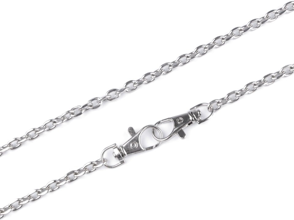 Lanț de 120 cm, cu zale ovale de 6 mm și finisaj de metal argintiu, cu carabine de prindere - perfect pentru poșete și gentuțe de mici dimensiuni.