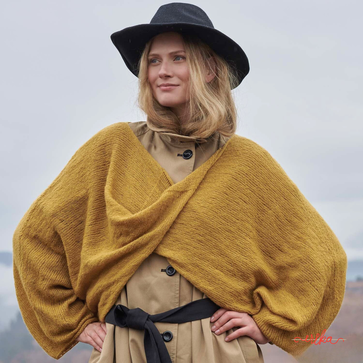 O piesă ușor de asortat cu orice ținută de toamnă: bluza cu detaliu răsucit poate fi purtată ca o capă, peste un trenci sau mantou, sau accesorizată peste o cămașă sau maletă. Modelul este disponibil pentru mărimile S/M și L/XL, necesarul de fire fiind de 200 grame (8 buc. fire Atenea) pentru mărimea mică și 225 grame (9 buc.) pentru mărimea mai mare. Vei putea exersa ochiurile pe față și pe dos, deoarece modelul este lucrat cu punct jerseu pe față și punct jerseu inversat. Proiectul este potrivit începătorilor care cunosc tehnicile de bază - montarea ochiurilor, tricotat pe față și pe dos, scăderi și creșteri simple, închiderea ochiurilor.