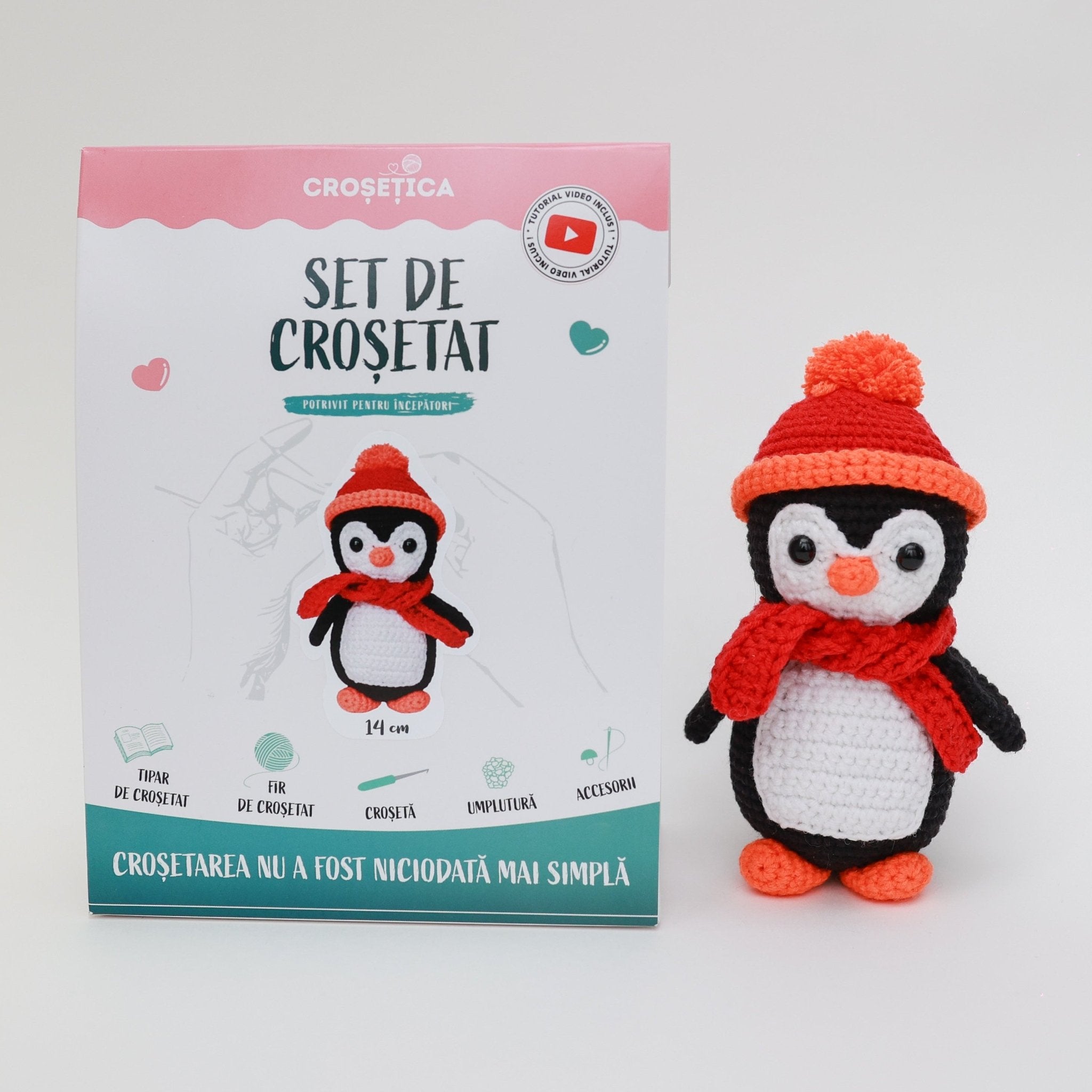 Kit-ul perfect pentru începători și cei curioși să experimenteze noi tehnici de croșetat - noul set de la Croșetica vine cu tot ce vă trebuie pentru a croșeta o jucărioară adorabilă: fire multicolore, croșetă, ac bont pentru finisare, ochișori, umplutură și pliant cu instrucțiuni detaliate in limba română. Acesta din urmă conține și link către tutorialul-video pas-cu-pas, care vă va îndruma pe parcursul activității.