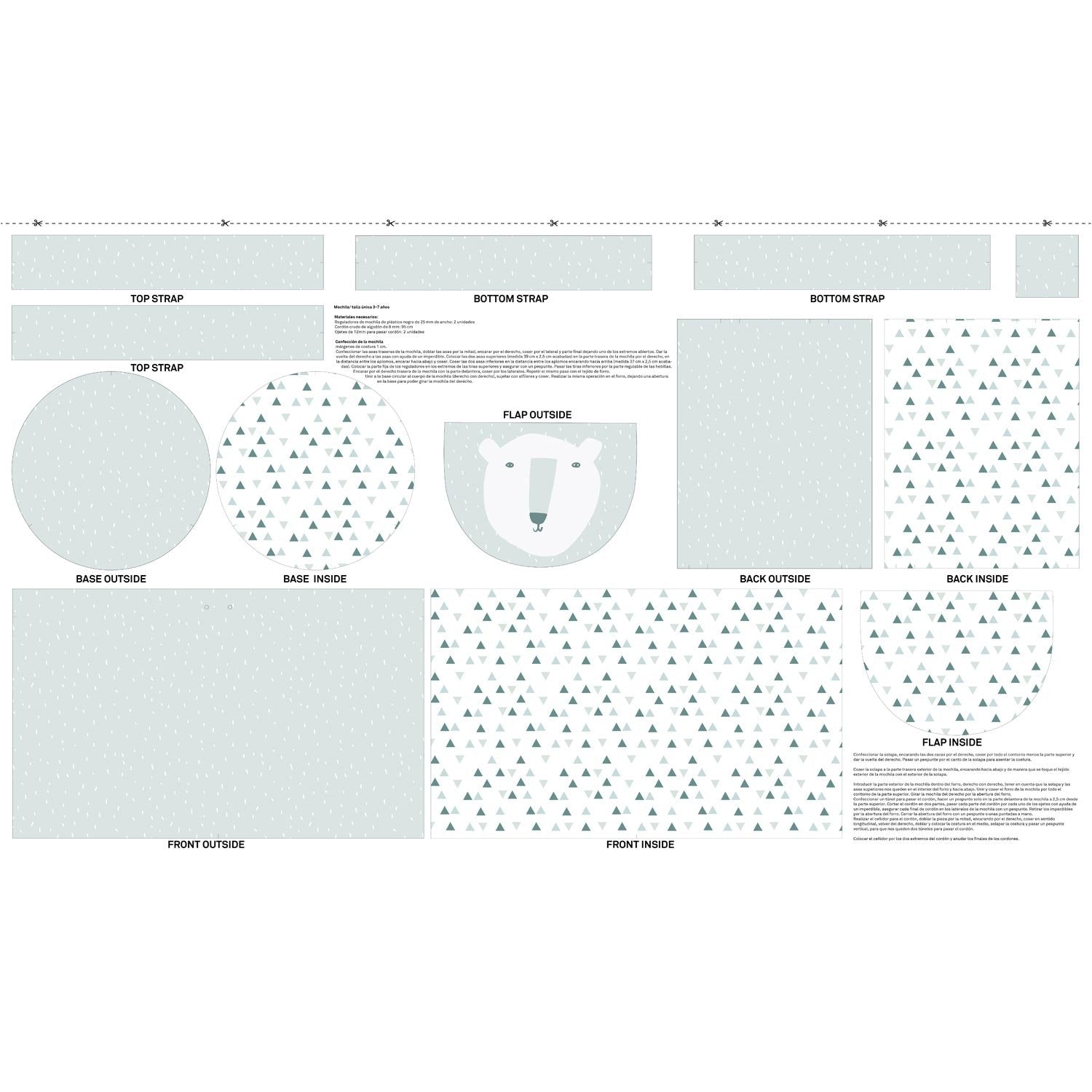 Un rucsac cu totul deosebit, cu un model simpatic, de ursuleț polar, care va deveni favoritul copilului tău - kit-ul de cusut POLAR BEAR conține o fâșie pre-imprimată de bumbac canvas, cu densitate mare, cu toate elementele-componente ale rucsacului, gata trasate pentru a fi decupate și cusute. Dimensiunea finală a rucsacului este de 33 cm inălțime, cu baza de 26 cm in diametru. Instrucțiunile de asamblare sunt imprimate direct pe stofă, dar pot fi descărcate gratuit cu variante in limbile engleză, spaniolă, germană, italiană, franceză și olandeză.