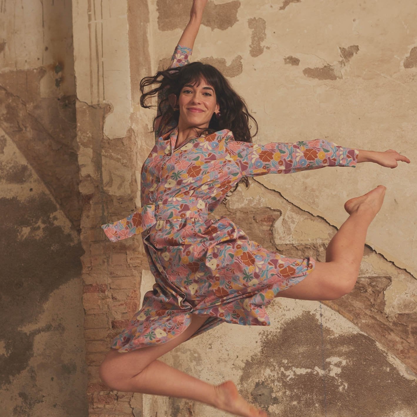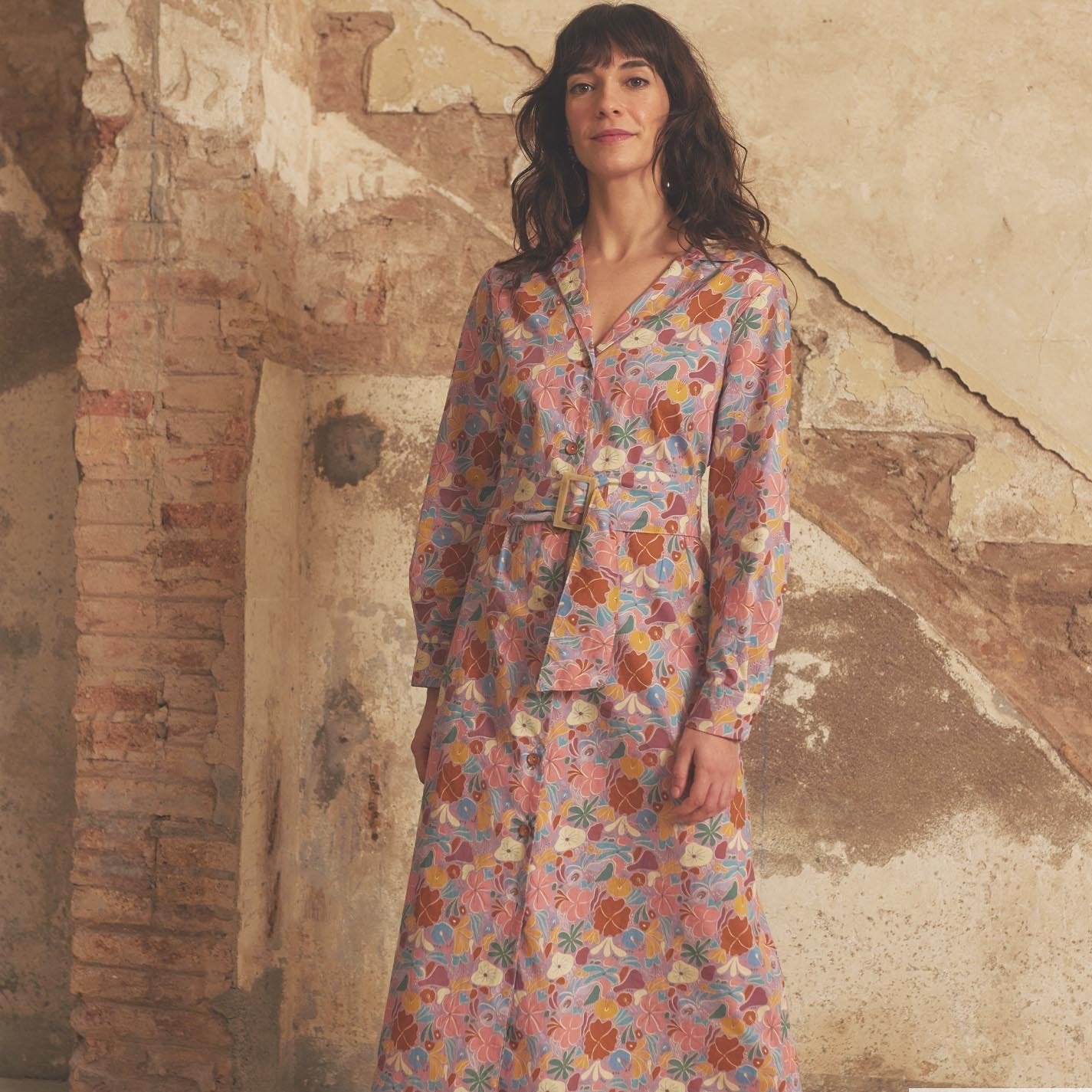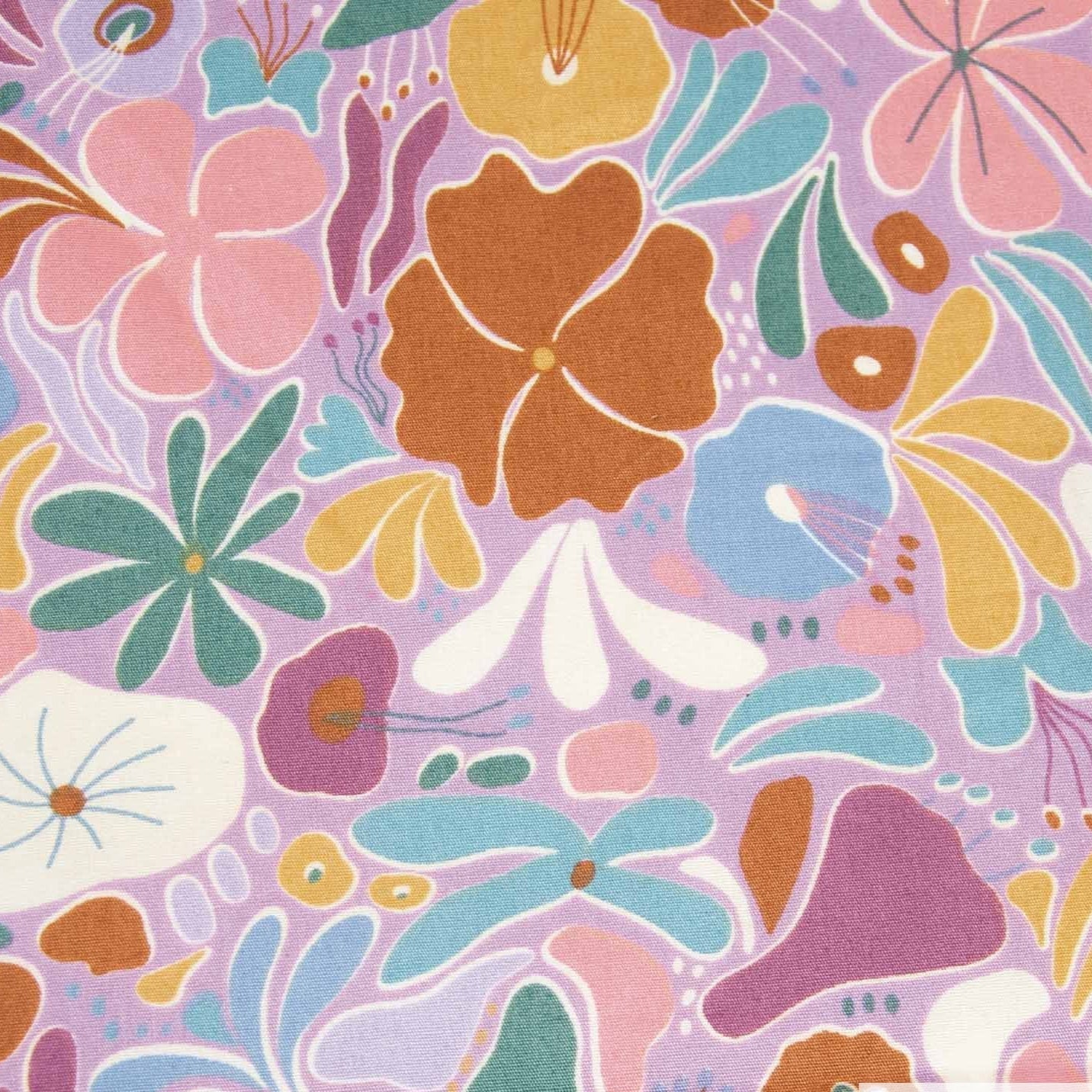 Un poplin cu imprimeu cu abstract de flori mari multicolore, in nuanțe pastelate de roz, bleu, galben și crem, perfect pentru articole lejere de primăvară-vară. Materialul este certificat OEKO-TEX 100, are un finisaj moale și plăcut, fiind potrivit chiar și persoanelor cu pielea foarte sensibilă. Poplinurile sunt țesături ușoare, cu un aspect semilucios, recomandate pentru bluze, fuste, rochițe, și alte articole vestimentare ușoare.