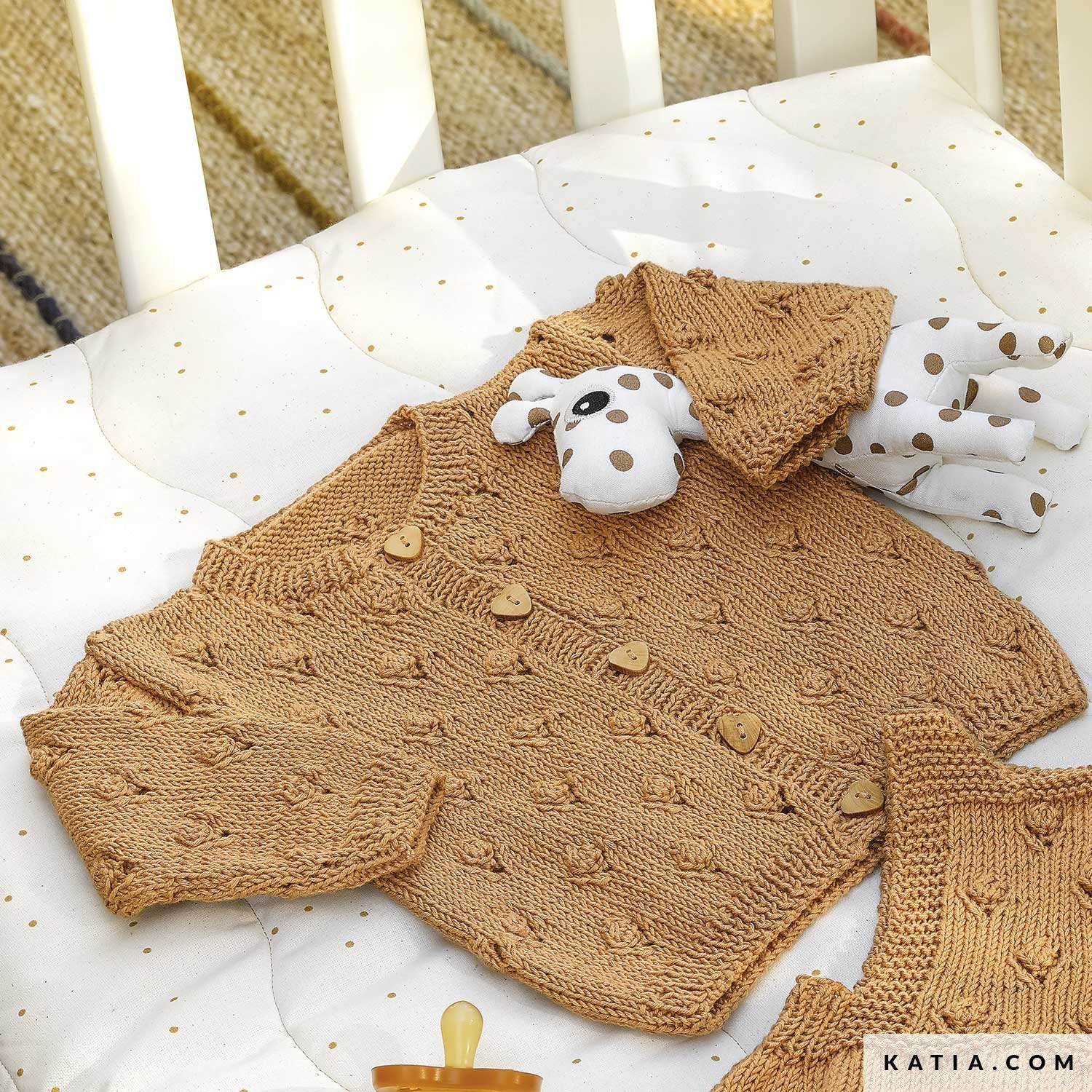 Revista KATIA Baby pentru sezonul de primăvară-vară vine cu o varietate de modele pentru bebeluși și copii, cu vârsta de până la 2 ani. Veți găsi piese adorabile, tricotate și croșetate din fire fine și moi, predominant din fibre naturale de bumbac și cașmir. Printre acestea - bluzițe, salopete, jachete, rochițe și body-uri simpatice cu detalii brodate sau croșetate.