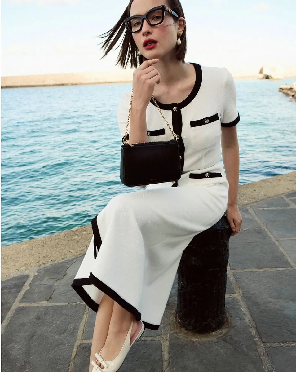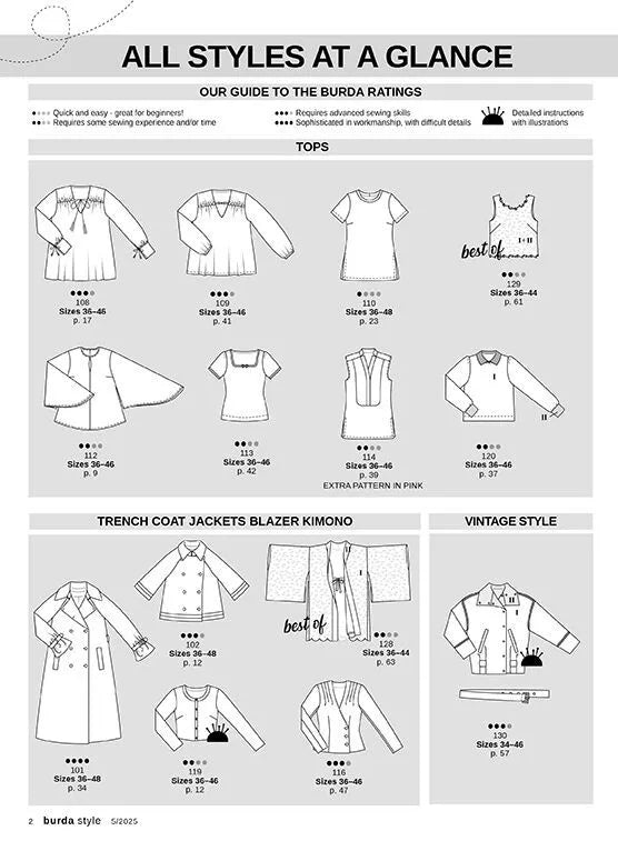 In paginile următoare regăsim articole inspirate din stilul franțuzesc cu accente marine - o colecție ititulată „Plimbare pe malul mării” care întruchipează eleganța retro și șicul francez, cu siluete inspirate de Coco Chanel. Descoperiți și cele două capodopere: un trench din satin și o vestă lungă pentru mărimi mari.