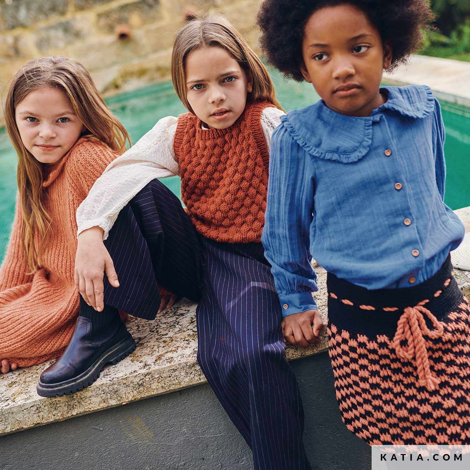 Ediția 107 de toamnă-iarnă a revistei Kids de la Katia vine cu o colecție de 31 de modele pentru copii cu vârsta intre 2 și 12 ani - pulovere, cardigane, veste, jachete și rochițe tricotate și croșetate din fire moi și colorate. Printre acestea veți regăsi 29 modele tricotate și 2 modele croșetate. Revista KIDS conține proiecte potrivite atât incepătorilor - cu modele simple și tehnici de bază, cât și persoanelor cu mai multă experiență, care preferă modele mai complexe cu torsade, combinații de culori și detalii ajurate. Firele folosite pentru aceste proiecte sunt foarte practice, ușor de intreținut, cu un finisaj plăcut la atingere și confortabile - Basic Merino, Merino Baby Aquarelle, Essential Alpaca, Funny Azteca, Cotton-Merino Fine, Pluton, Snowy, Soft Gratte, Baby Ultrasoft.