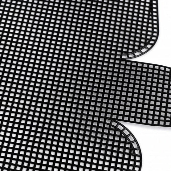 Gențile și poșetele lucrate manual sunt foarte populare, iar pasionații de creații handmade aleg să-și diversifice mereu tehnicile de lucru cu noi materiale practice. Șabloanele din plasă de plastic sunt foarte ușor de aplicat, acestea permit impletirea firelor tip bandă sau panglică prin găurile din plasă, pentru a crea modele cu desen geometric deosebit. Șablonul de culoare neagră are dimensiunea de 47.5 cm x 45 cm in format desfăcut, pentru a produce o poșetă cu mărimea de 24 cm x 13 cm x 6 cm in format inchis.