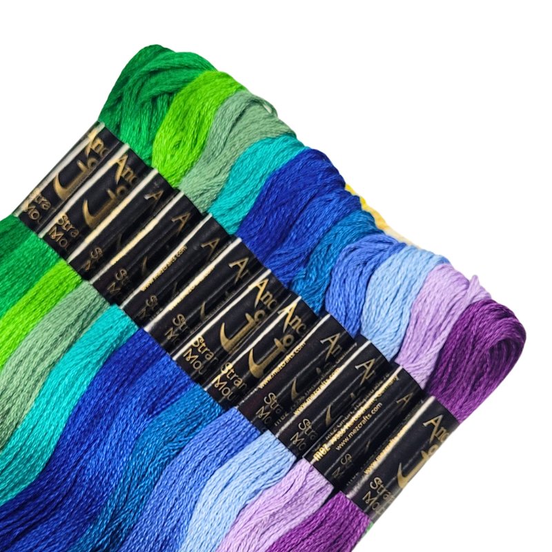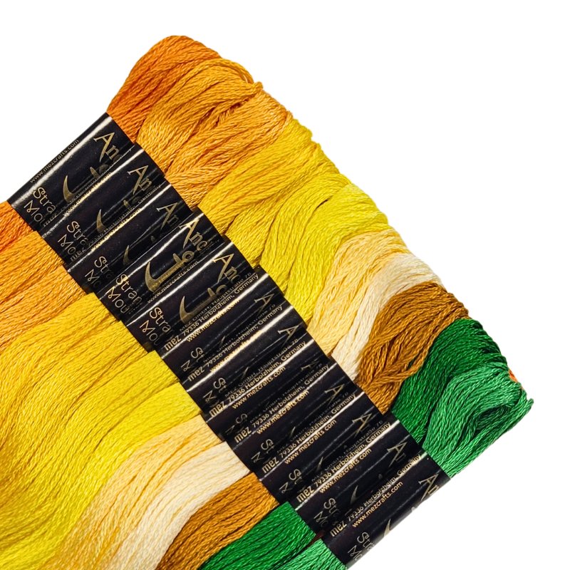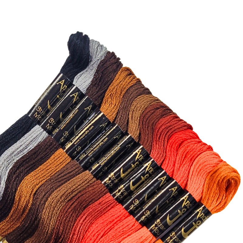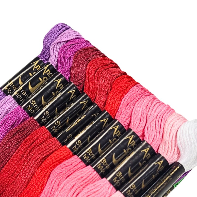 Un set cu 48 culori variate pentru a coase și broda modele diverse cu ață specială de bumbac egiptean dublu-mercerizat marca Anchor Mouline. Acesta este un bumbac de calitate superioară, cu un finisaj mătăsos, care nu se va incâlci și care iși va păstra intensitatea culorii in timp. Fiecare jurubiță conține 8 metri de ață, care se poate răsfira in 6 fire duble mai subțiri.