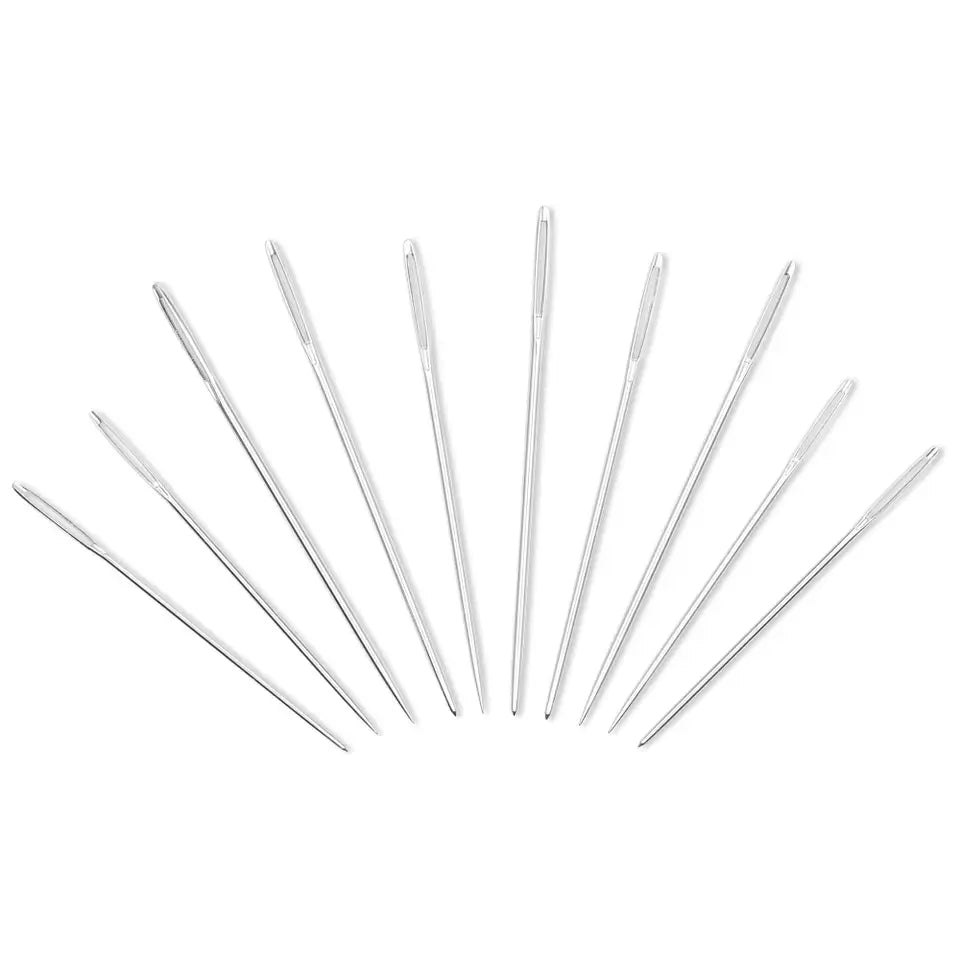 Set cu 10 ace asortate pentru broderie - atât cu vârf ascuțit pentru broderie fină, cât și cu vârf bont pentru goblenuri. Prezentate intrun tub practic de păstrare, de formă hexagonală - astfel încât să nu se rostogolească de pe suprafața de lucru, acesta mai are și un magnet la bază. Când înclinați tubul oblic, in jos, acele nu vor cădea din acesta, fiind reținute de magnetul integrat. Capacul de culoare roz aprins ajută să găsiți rapid tubul cu ace in geanta sau cutia Dvs. de depozitare a accesoriilor de lucru manual.