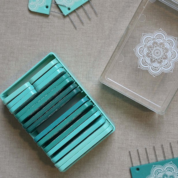 Setul de ace din colecția specială Mindful by KnitPro ușurează mult etapa finală de blocare a pieselor tricotate sau croșetate manual. Acesta conține 20 de piese: 12 cu 8 ace și 8 cu 4 ace, având mânere de plastic in nuanțe de turcoaz cu model floral tip mandala, specific colecției Mindful. Piesele cu ace se fixează direct pe articolul tricotat sau croșetat pe care il blocați și se pot utiliza inclusiv cu sârme de blocare, pentru șaluri sau eșarfe de dimensiuni mari.