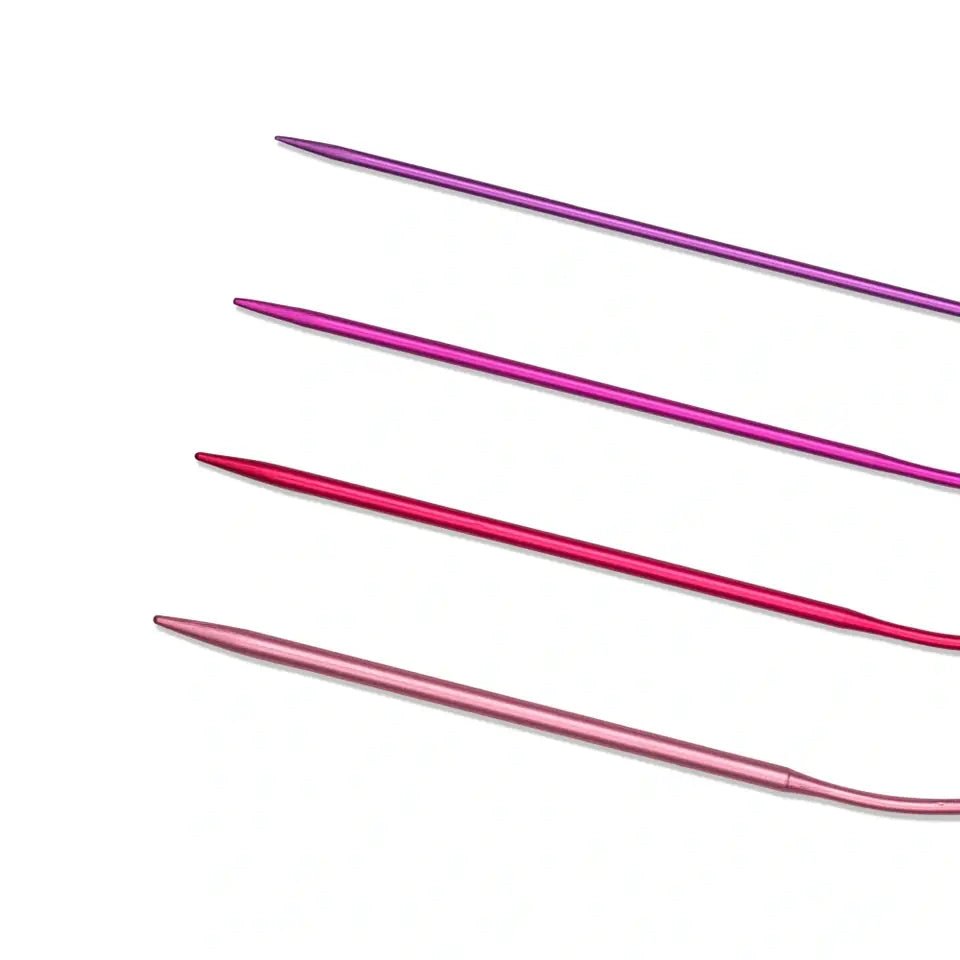 Un cadou perfect pentru pasionații de tricotat - noul set din colecția Prym Colour cu 4 mărimi de andrele circulare, sortate pe culori, de 2.5 mm, 3 mm, 3.5 mm și 4 mm, cu o lungime de lucru de 80 cm. Le puteți folosi pentru tricotat drept sau circular, andrelele sunt fabricate din aluminiu ușor și neted, care permite ochiurilor să lunece ușor pe capete. Totodată, forma ușor curbată de trecere de la capete pe fir asigură un tricotat fără efort. Cablurile sunt suficient de groase pentru a fi rezistente dar și flexibile. Pentru fire mai groase, vă recomandăm și setul cu andrele din aceeași colecție cu mărimi de 4.5 mm, 5 mm, 6 mm și 7 mm.