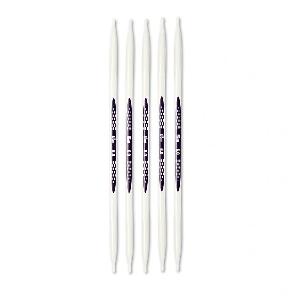 Tricotatul ciorapilor, al mânecilor sau al oricăror altor articole tubulare poate fi chiar ușor și rapid, datorită seturilor de andrele duble din gama Ergonomics, a mărcii germane Prym. Fabricate dintrun material plastic compus, de inalta performanșă, acestea sunt silențioase și ușor flexibile, pentru confort sporit in timpul lucrului. Capetele in formă de picătură au menirea să prindă ușor ochiurile și să ghideze firul de lucru fără a-l scăpa de pe andrea, iar forma triunghiulară ale andrelelor facilitează trecerea ochiurilor fără să trageți mult de piesa tricotată. Seturile de andrele pentru ciorapi sunt disponibile in câteva diametre și conțin câte 5 andrele de 20 cm fiecare.