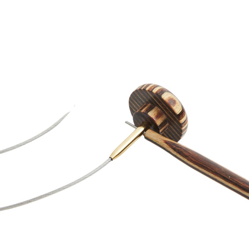 Cablurile cu element rotativ la 360 grade de la Lantern Moon sunt alegerea perfectă pentru a tricota circular, cât și pentru a lucra articole drepte, deoarece previn oboseala mâinilor și asigură o alunecare perfectă a ochiurilor de pe andrele pe cablu. Acestea sunt fabricate din oțel inoxidabil și sunt acoperite cu nailon, au o ținută foarte bună și rămân bine intinse, iar conectoarele de alamă sunt placate cu aur de 24 de carate. Acestea se cuplează ideal cu capetele de andrele interschimbabile de la Lantern Moon și se fixează cu cheița specială inclusă in set. Fiecare set conține 2 cabluri de aceeași lungime, o cheie de fixare și 2 opritoare de lemn. Cablurile sunt disponibile in 7 variante de lungimi: