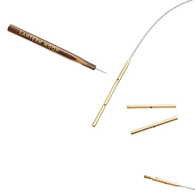 Conectoarele de alamă, placate cu aur de 24 de carate, de la marca Lantern Moon, sunt foarte utile pentru proiectele care necesită o lungime extinsă de lucru. Puteți conecta 2 sau 3 cabluri cu ajutorul conectoarelor, astfel veți obține lungimea suficientă articolului pe care il tricotați. Setul conține 2 conectoare de 35 mm fiecare.