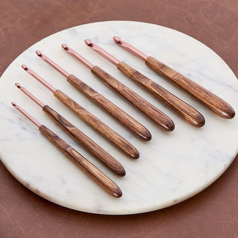 Un nou set de ediție limitată de la KnitPro, cu o gamă deosebită de croșete și accesorii practice, prezentate intro husă tip poșetă cu aspect elegant. Design-ul croșetelor merită o apreciere aparte - acestea au vârfurile bine cizelate, din metal foarte neted, finisat intro nuanță arămie, cu mânere ergonomice din lemn lăcuit, plăcute la atingere și ușor de manevrat. Astfel, veți putea croșeta ore in șir fără a vă obosi mâinile. Setul Mellow conține următoarele articole și accesorii: