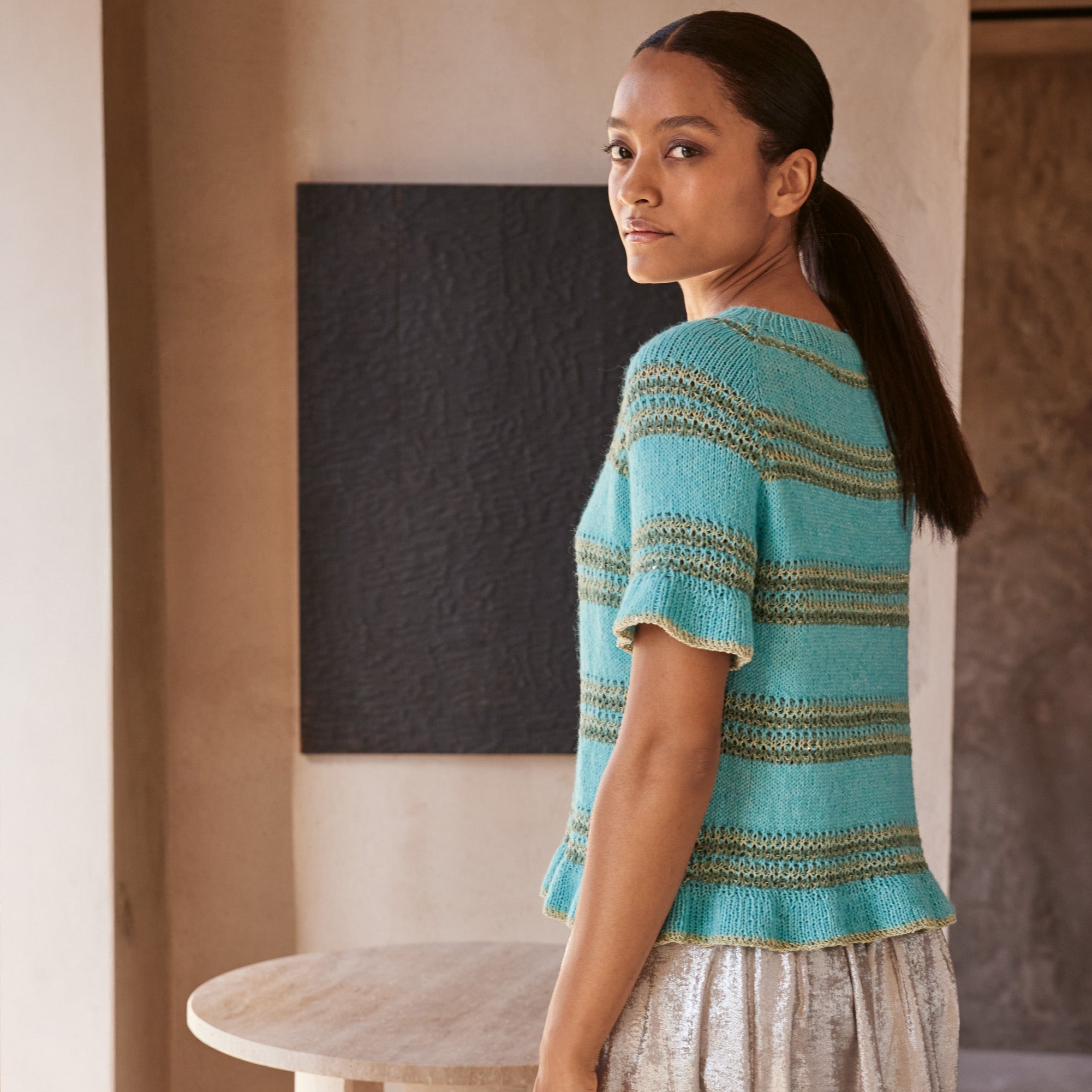 Firele subțiri, naturale și mătăsoase rămân în topul preferințelor pentru sezonul de primăvară-vară, iar designerii de la Lana Grossa ne propun un nou fir deosebit cu aceste caracteristici. Tencellino este un fir subțire răsucit din fibre de in și Tencel - o viscoză obținută din eucalipt - care se simte foarte plăcut pe piele și are un aspect semi-lucios și elegant. Firul se lucrează pe andrele de 4 - 4.5 mm și poate fi de asemenea combinat cu alte fire de efect - cu paiete (Filo Paillettes) sau cu texturi mai pronunțate (Per Fortuna, Ecopuno).