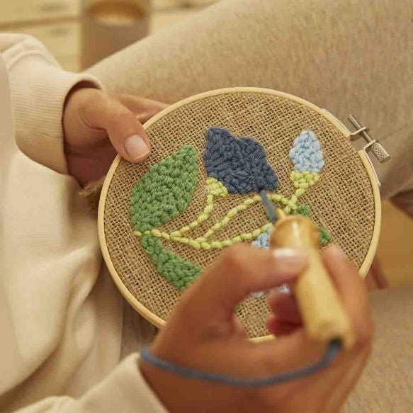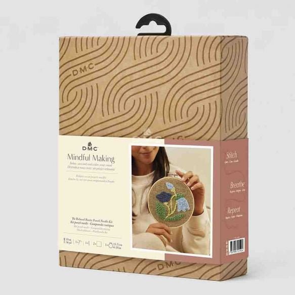 Kit-urile de broderie de la marca DMC sunt recunoscute și apreciate pentru calitatea excelentă a materialelor și pentru modelele foarte frumoase. Noul kit de broderie străpunsă (”punch needle embroidery”) vine cu un design colorat și ușor de realizat, cu un model de flori in nuanțe de primăvară. Kit-ul conține fire multicolore din fibre acrilice, de 33 metri lungime per total, 2 bucăți de etamină - una de in 100% și alta de bumbac 100%, ambele cu dimensiunea de 26 cm x 26 cm, un gherghef de 15,7 cm, un ac pentru broderie străpunsă și un pliant cu instrucțiuni, in limbile engleză, franceză, spaniolă, germană, italiană, portugheză și olandeză. Modelul brodat finit va avea dimensiunea de 15 cm x 15 cm.